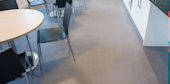 Expona Design has a 3mm gauge and 0.7mm wear layer making it suitable for very heavy commercial applications, such as areas like an office reception where there is likely to be high levels of foot traffic. Another robust commercial luxury vinyl tile product from Polyflor, Expona Commercial in Light Grey Matrix 5074, was selected for use in the staff kitchen and dining area. The cross linked and UV cured PUR polyurethane reinforcement used in Expona flooring guarantees a simple cleaning and maintenance regime.